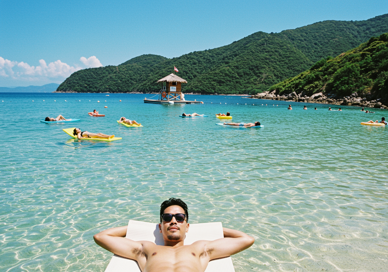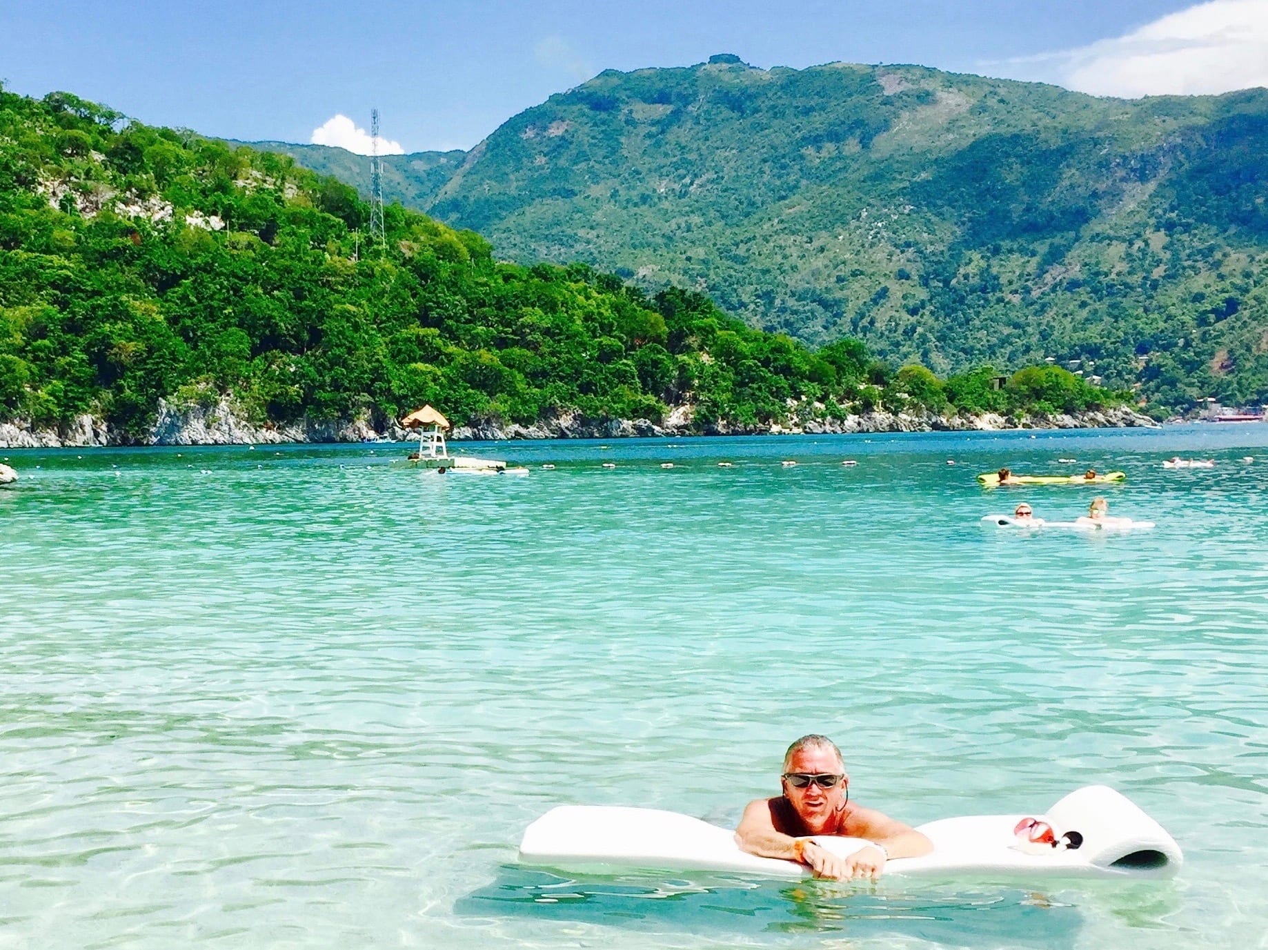 After lunch we took advantage of the complimentary lounge chairs and floating sea mats. Meanwhile the kids were enjoying jumping off rocks, snorkeling the beautiful green seas, looking at tropical fish and beautiful corals.