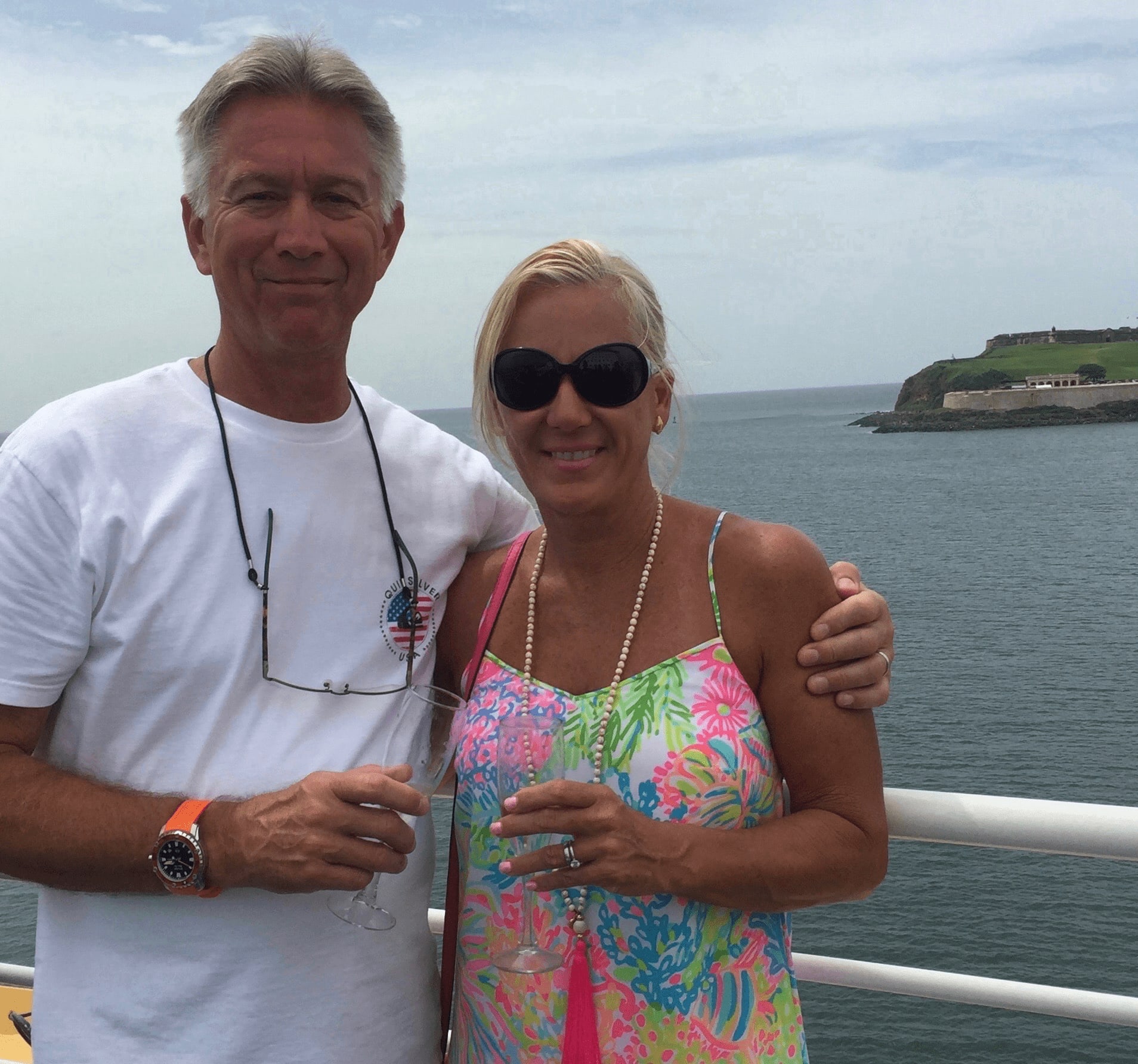 The champagne reception started at 1:45 pm. just as the ship was leaving the San Juan Puerto Rico Port and we were greeted by ship’s crew members including Mitch the ship’s cruise director.